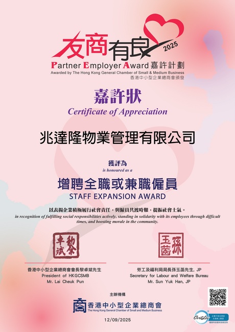 | QF 星級僱主嘉許狀 |